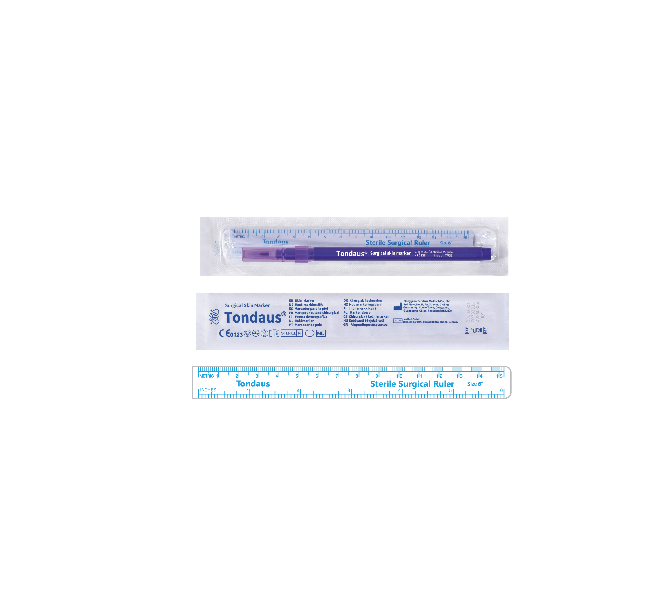 Tondaus®医用皮肤记号笔种类繁多,墨水颜色以紫色为主,广泛应用在人体皮肤上的普通手术、肠道外科手术、骨科手术、神经激素手术、心血管手术和放射治疗等,为医生在手术过程中标记提供便利。近年来,唐德医用皮肤记号笔受到了整容整形行业的广泛欢迎。