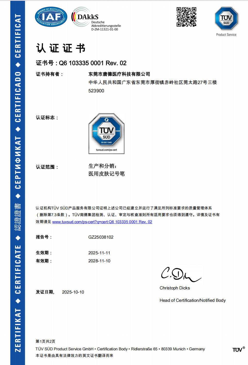医用皮肤记号笔是一种辅助型医疗器械,采用安全墨水,专为人体皮肤安全标识设计,广泛应用在人体皮肤上的普通手术、肠道外科手术、骨科手术、神经激素手术心血管手术和放射治疗等手术标记。